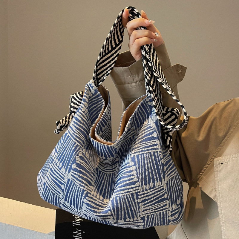 カジュアルレトロ大容量脇下バッグレディース2024新作ファッション百合洋気ショルダーバッグバケツバッグ