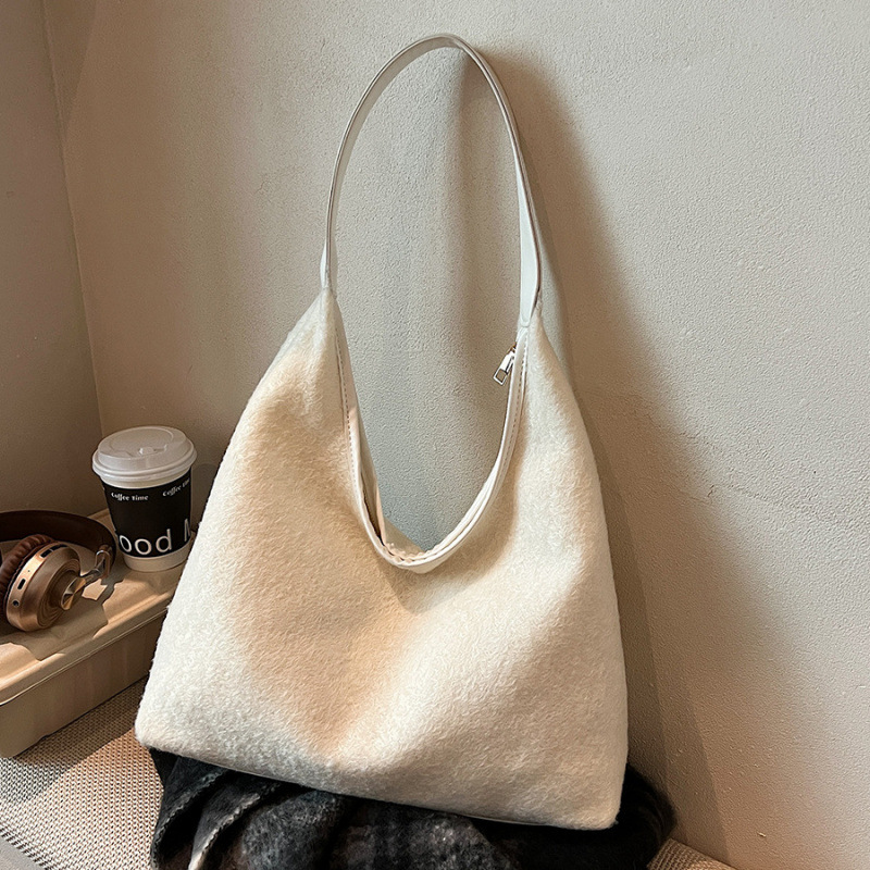 毛のレトロな大衆のトートの包みの女性の秋冬の2024の新型のファッションのわきの下の包みの百合の肩のハンドバッグ