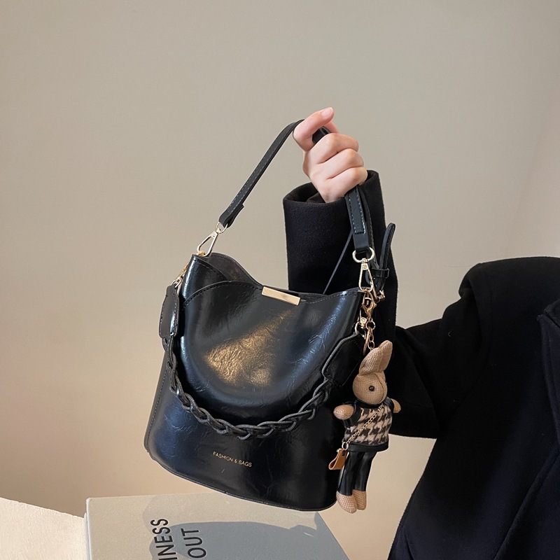 手に持ってファッション的なバケツバッグ女性2024冬の新型シンプルなシングル肩斜めバッグ韓国版高級感女性バッグ