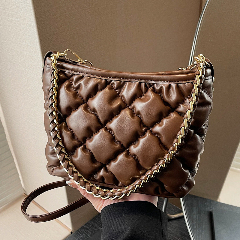 高級感シワ通勤腋の下の女性カバン刺繍糸菱形百合雲バッグ大容量小衆チェーンバケツバッグ
