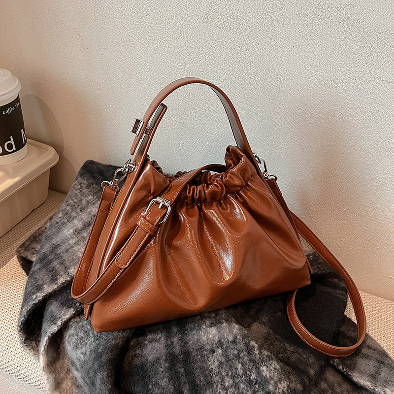高級感のあるしわ2024秋冬新作ファッションレトロ百合大容量手持ちシングル肩の特包女性