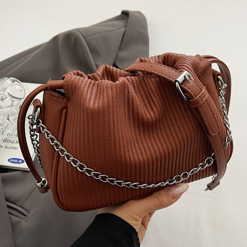 しわ雲包女式2024新型ファッション百合シングルショルダー高級質感引き縄バケツバッグ