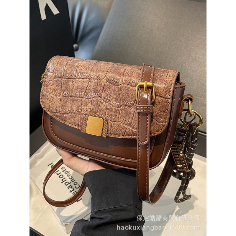 大衆デザインバッグ女性秋冬2024新型レトロ高級感シングル肩斜めバッグ女性起爆サドルバッグ