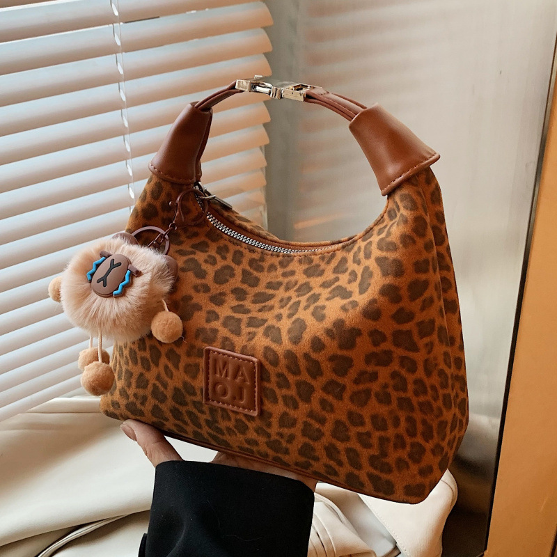 レトロ小衆通勤脇下バッグレディースバッグ2024新作ヒョウ柄ショルダーバッグファッションつや消しハンドバッグ