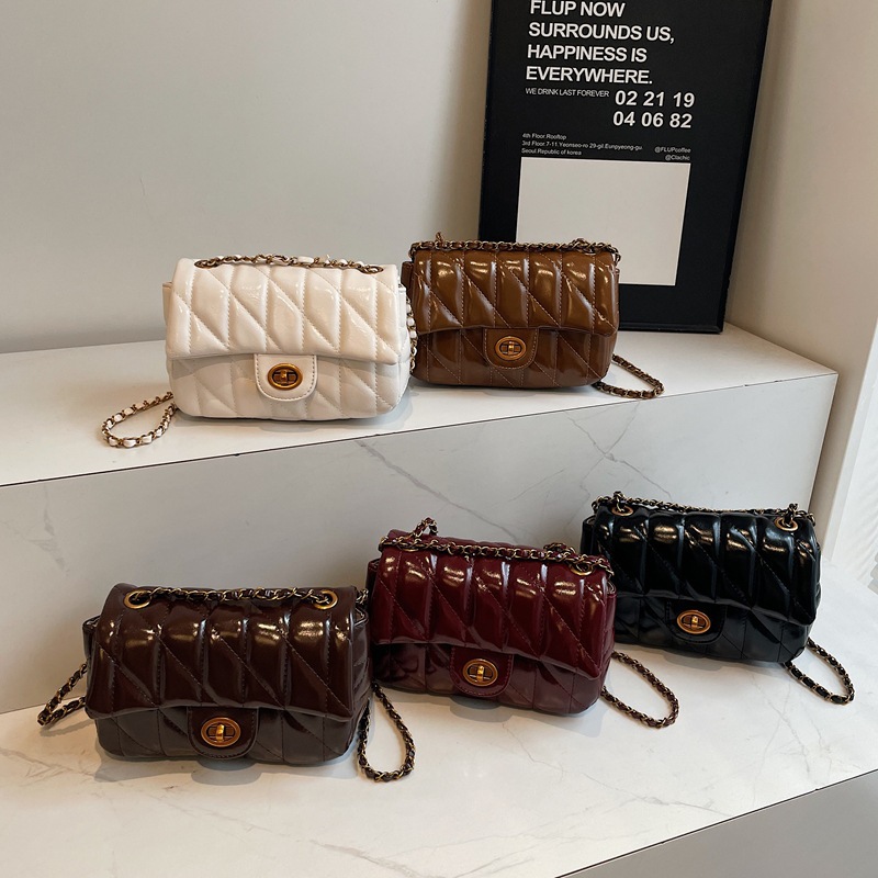 小香風バッグレディース2024新作秋冬亮puチェーンシングル肩斜めショルダーバッグファッションファッションファッション小方バッグ菱格