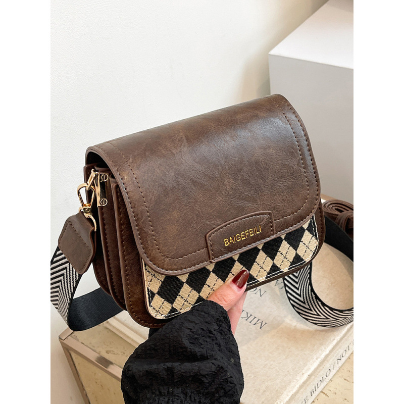 国境を越えて流行している韓国版の流行盤菱格の小さい方のカバンの女性の百合のカジュアルな個性の通勤の洋風の斜めなショルダーバッグ