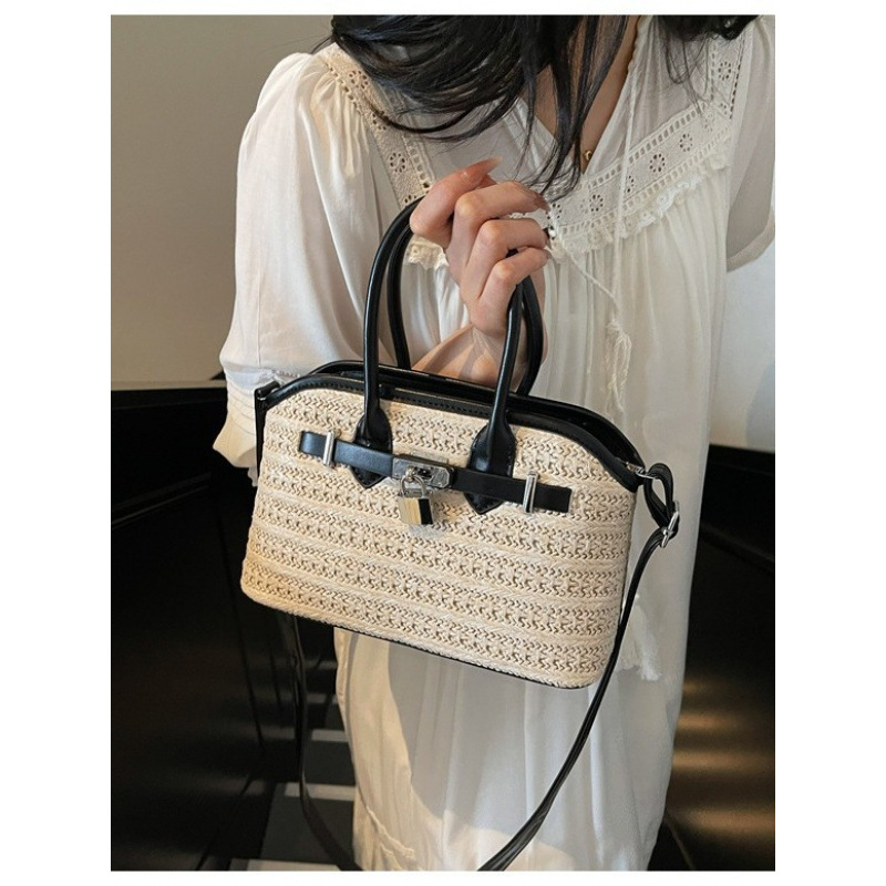 クロスボーダー織バッグ女性のための 2025 春の新ファッションわらハンドバッグ多用途小さな正方形バッグシングルショルダークロスボディバッグ