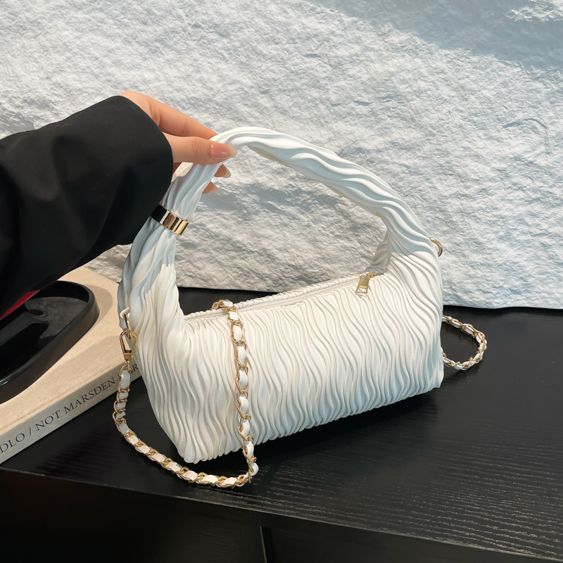 フレンチファッションプリーツカジュアルハンドバッグレディース2025春夏ニッチデザイン多用途チェーンショルダークロスボディバッグ