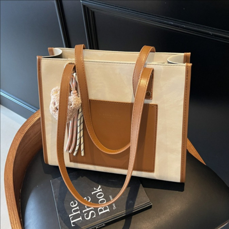 韓国風ファッショントレンド大容量トートバッグ女性用2025新作シンプル通勤コントラストカラーステッチショルダーバッグ