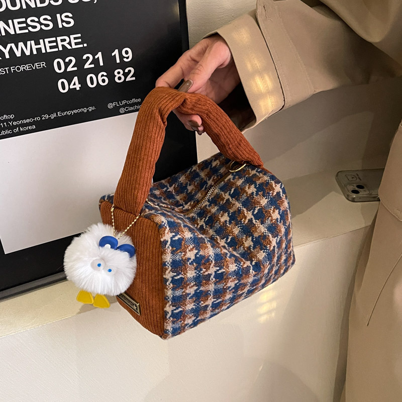 千鳥格のハンドバッグ2023秋冬の新型のかわいいフグのカバンは年を越えて色のハンドバッグにぶつかって斜めに肩掛けの女性にまたがります。