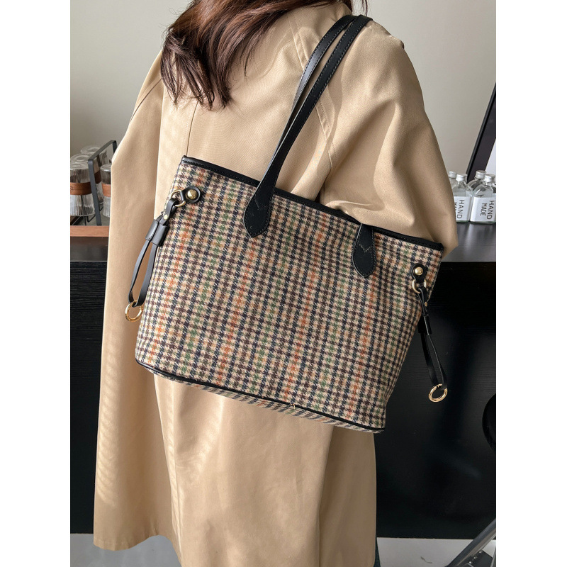 大容量ズックバッグ女性2024秋冬新作格子百合爆型通勤バッグシングルバッグ
