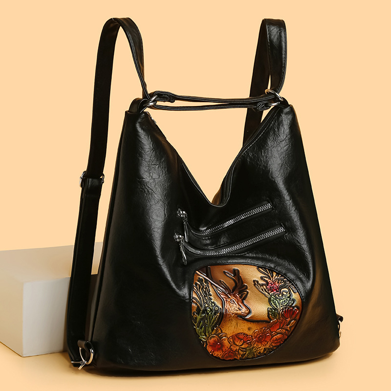 高级感レトロ大容量レディースランドセル2024新作ファッション百合PU純色多背法トートバッグ