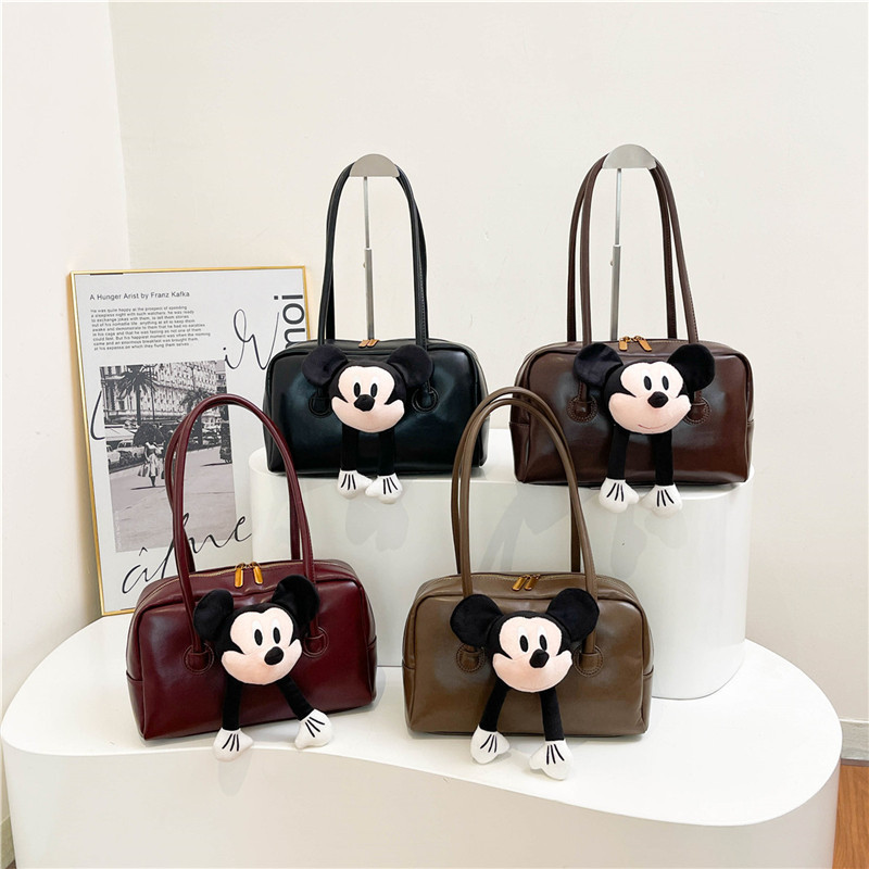 レトロ通勤大容量バッグレディース2024新作百合斜めショルダーバッグシングル肩脇下バッグミッキー可愛い