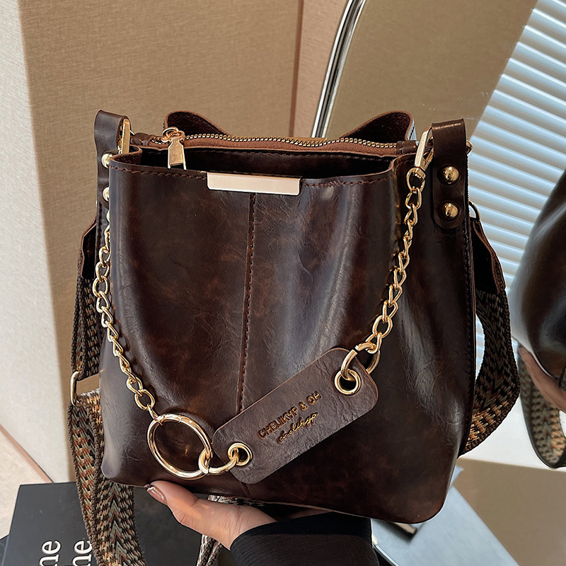 手提げチェーンのレトロなカバン2024新型大容量バケツバッグファッション