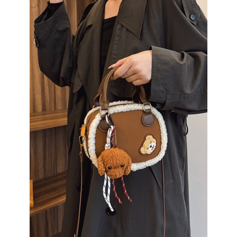 韓国版insトレンドファッションシングルショルダーバッグ女性2024秋冬新モデル子羊毛高級感斜めショルダーバッグ小方バッグ