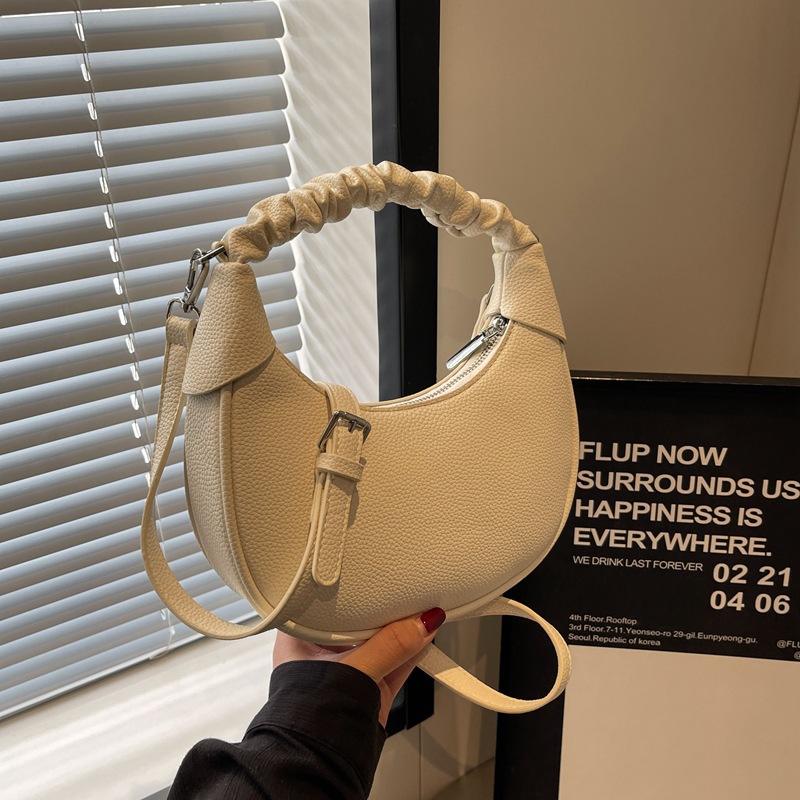 2024新型女性シングル肩斜めショルダーバッグ韓国版insハンディムーンバッグソフトレザーpu餃子バッグ女性百合