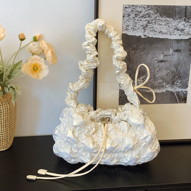 外国貿易の潮の韓国insの少女の心のしわの泡の片肩の特の包みの手提げの小さい清新な女性のキャンバスのわきの下の包み