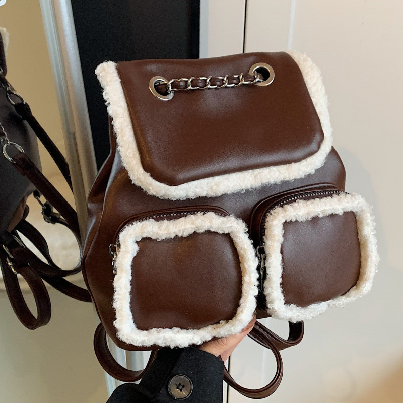 秋冬の流行の小さい大衆のかわいい人形のリュックサックの女性の2024新型の通勤のカジュアルな大容量の肩の毛のカバン