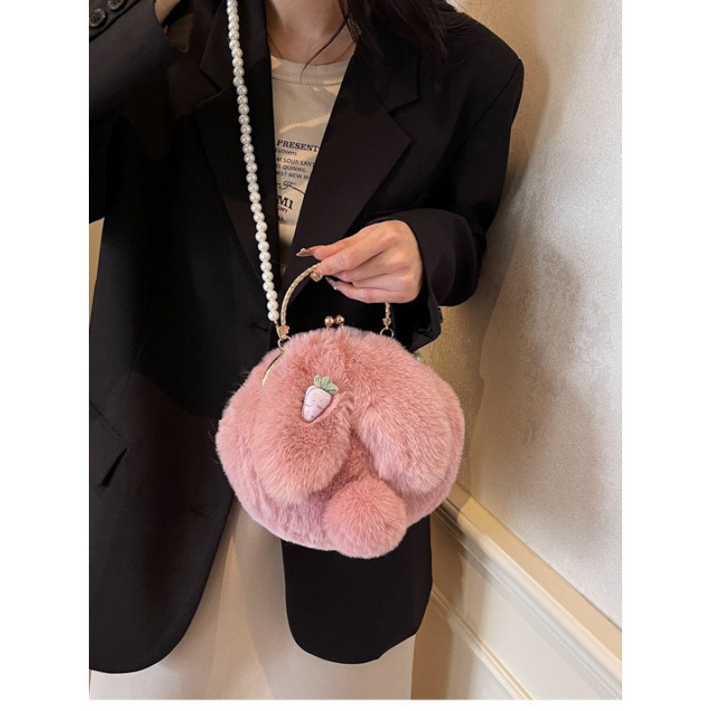 クロスボーダーのベルベットのバッグの女性秋冬2024の新しい小衆真珠の斜めのショルダーバッグはかわいい携帯用の丸いバッグです。
