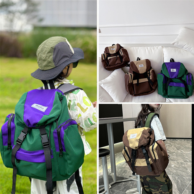 韓国版男女子供リュックサックファッション衝突色外出運動子供登山バッグ新型大容量子供リュックサック