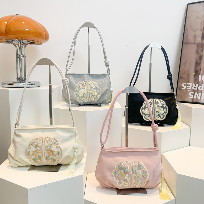 2024新型ファッション洋気感しわ雲包国風ショルダーバッグ新中国式刺繍シングル肩脇下バッグ女性