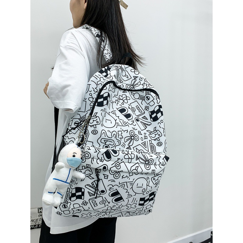 中学生カバン女子中学生大容量トレンド落書きプリントリュックサックins新作小学生リュックサック