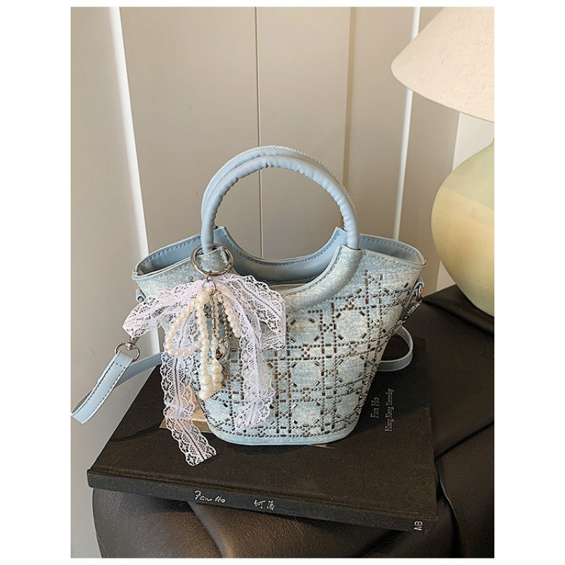 女性のためのハイエンドの明るいダイヤモンドハンドバッグ 2025 新しいトレンディなファッションデニム餃子バッグ夏の質感ショルダーバッグ