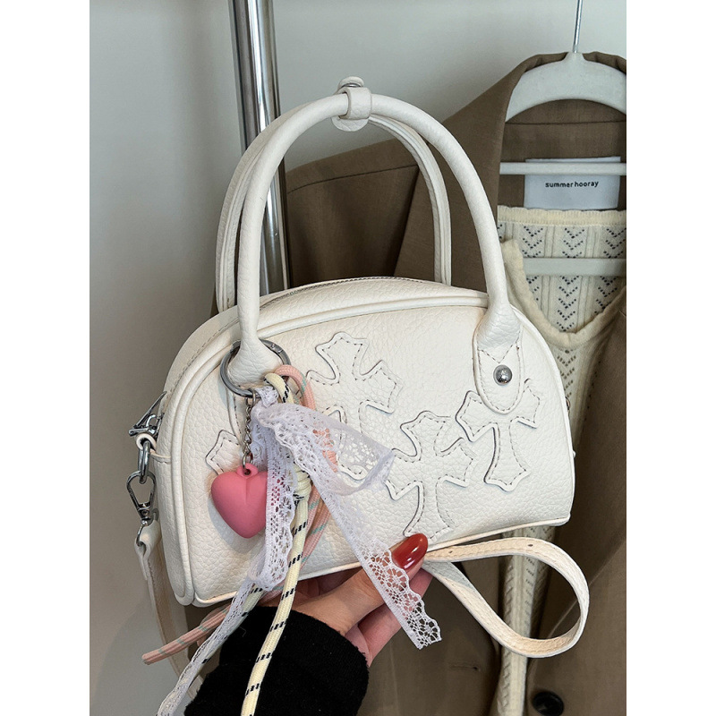 クロスボーダー新製品、クールでパーソナライズされたクロスステッチハンドヘルドボストンバッグ、ニッチで多用途なホットガールスタイルの女性用クロスボディバッグ