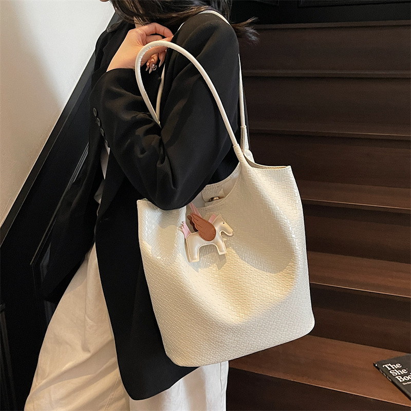 クロスボーダー織り柄大容量ワンショルダーポータブルバケットバッグ女性用2025新しい人気の通勤脇トートバッグ