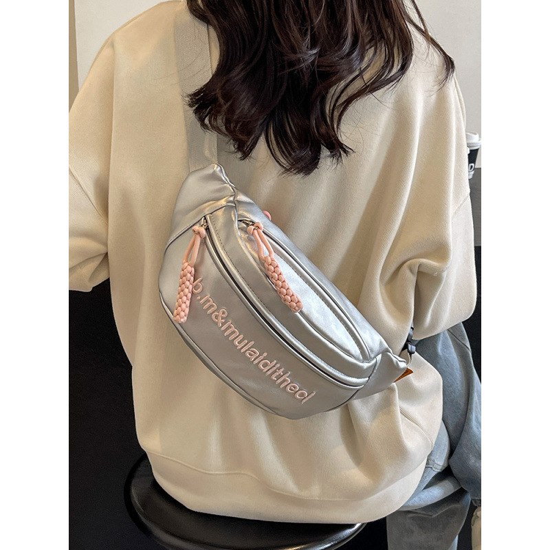 今年人気のニッチなシルバーバッグ女性用 2024 新作夏多用途クロスボディチェストバッグファッショナブルな携帯電話ウエストバッグ
