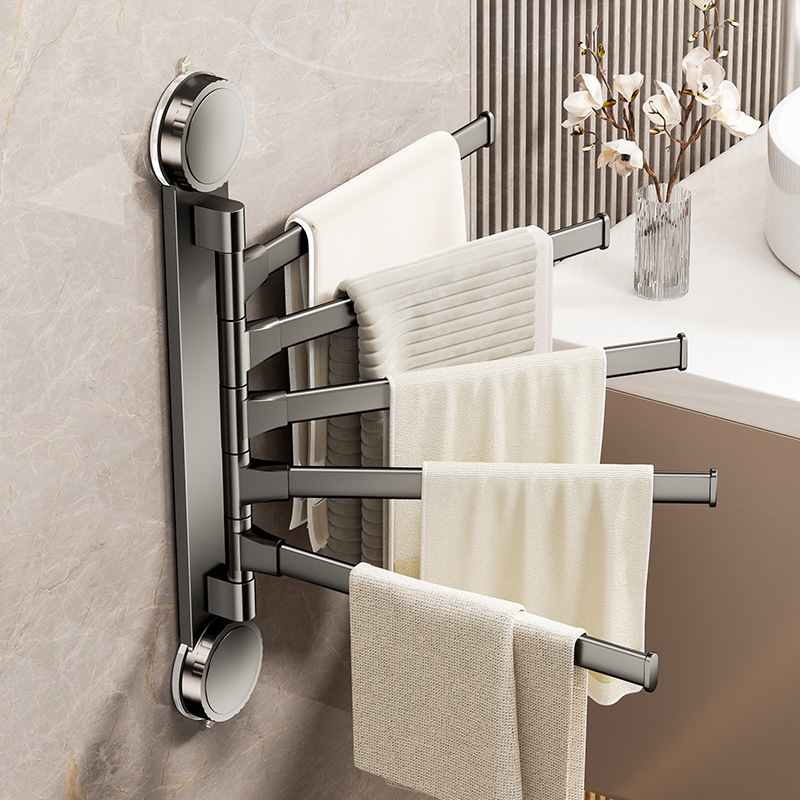 穴なし壁掛け吸盤回転タオルラック多機能浴室壁収納棚宇宙アルミ多棒タオルバー
