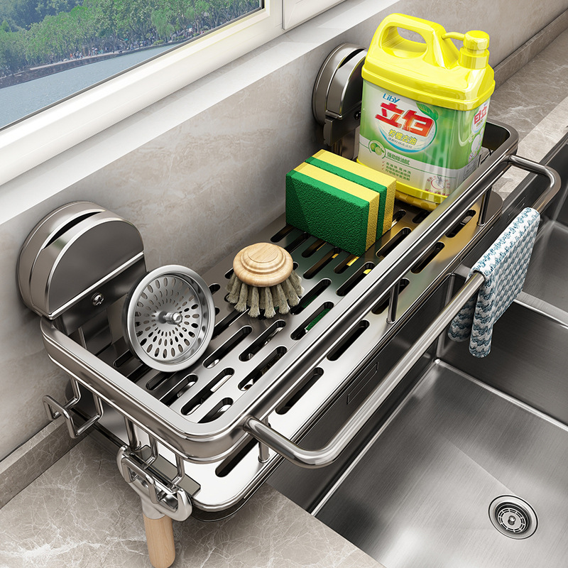 吸盤厨房物置棚多機能穴なし壁掛け雑巾スポンジ水槽の水を流して布を洗って収納します。