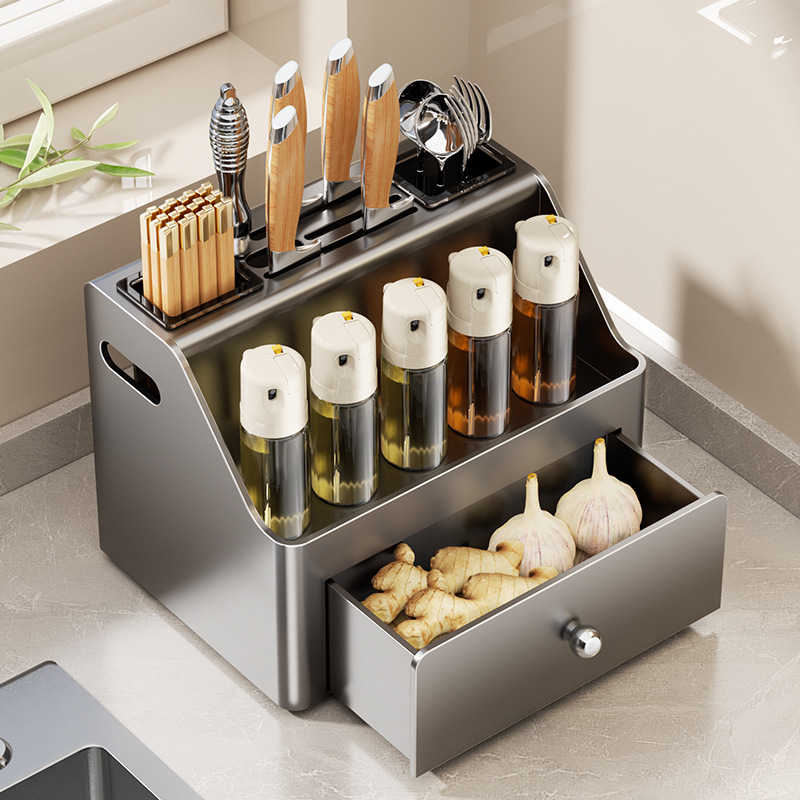 キッチン調味料収納ラック多機能ナイフホルダーカウンタートップキッチン用品収納ボックス箸バレル一体型調味料ボトルラック