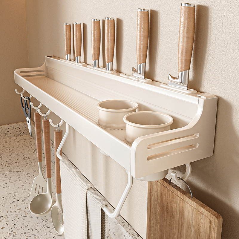 科楽白色壁掛け式台所用品棚穴なし多機能収納棚家庭用刃物フック棚