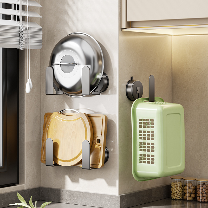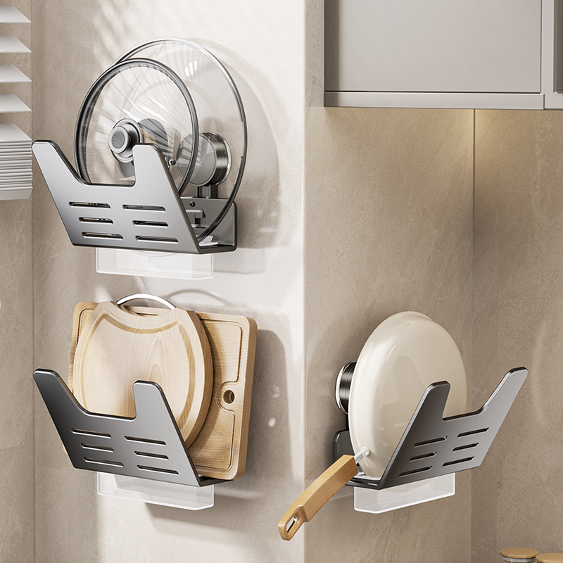 ガン灰吸盤鍋蓋ラック壁掛け式穴なし家庭用キッチンラックまな板まな板置き収納神器
