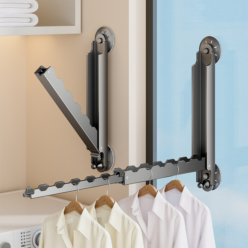 吸盤見えない折りたたみハンガー室内家庭用伸縮式ひんやりハンガーバー伸縮可能バルコニー物干し神器