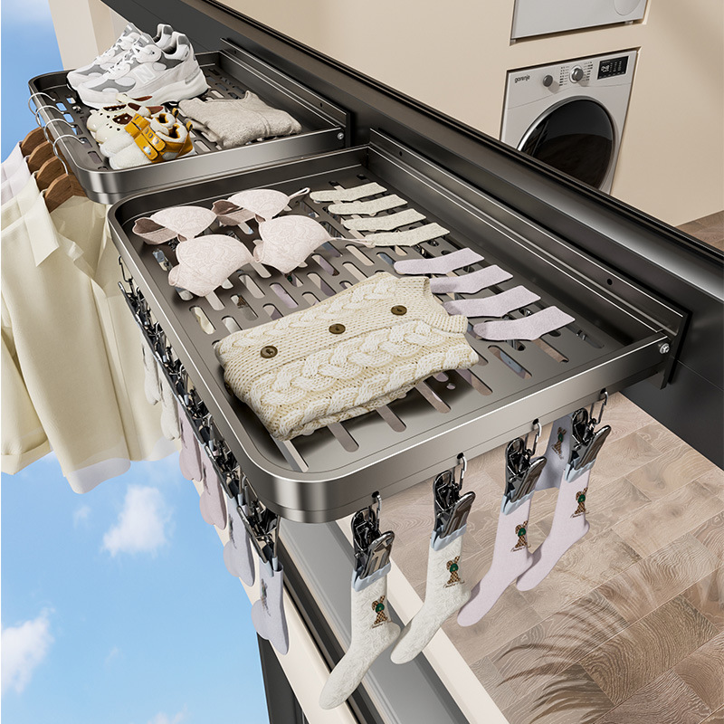 折り畳みハンガー穴なし家庭用ベランダ壁掛け服壁掛け干しハンガー干し靴下ハンガー多挟みハンガー