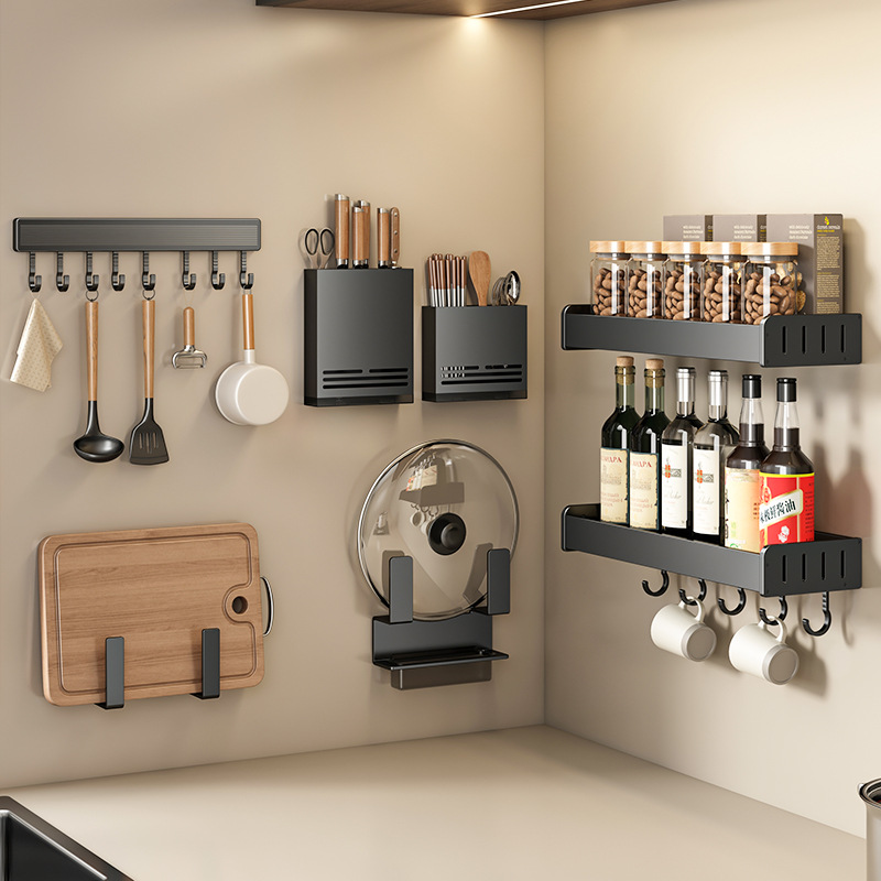 キッチン多機能ラック壁掛け式穴なし調味料ラック家庭用箸ホルダー鍋蓋整理収納ラック