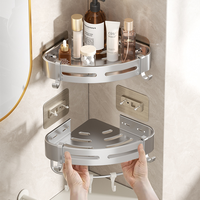 浴室三角棚穴なしトイレ壁掛け式水切りトイレ洗面台宇宙アルミコーナーラック