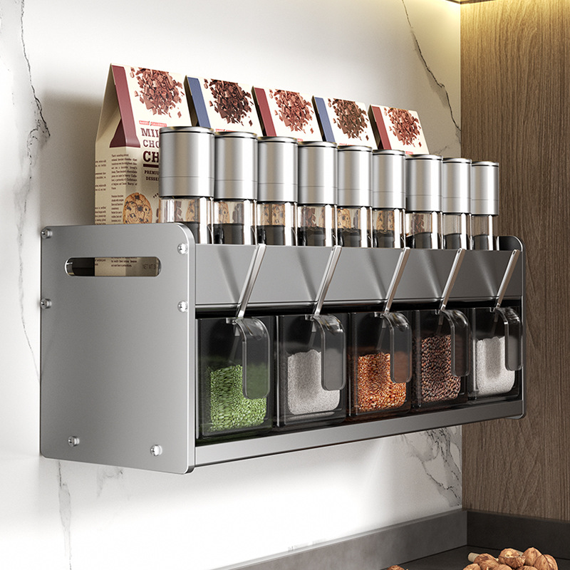 台所の棚は穴を開けないで壁掛けの調味料棚を広げて調味料の壁の多機能家庭用大全の収納棚を広げます。
