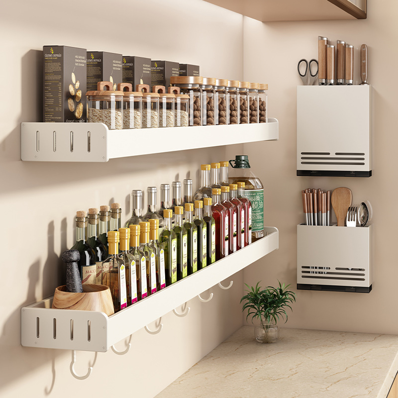 白いキッチン棚壁掛け式穴なし家庭用ナイフ棚調味料まな板まな板収納調味料棚
