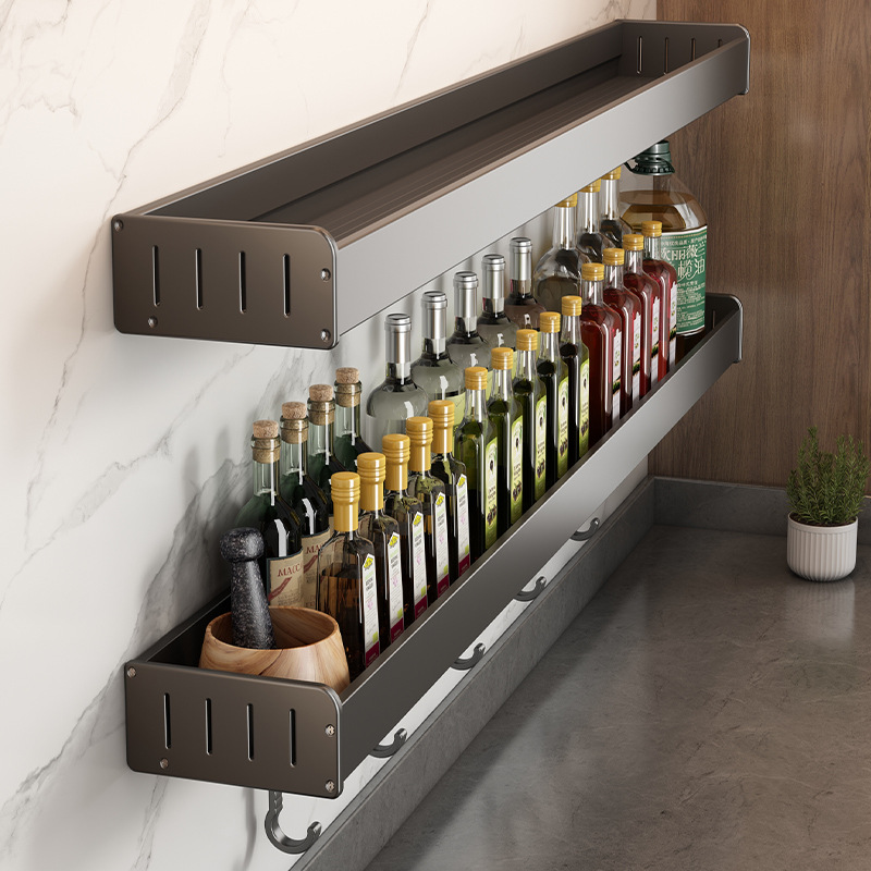 ガンメタルグレーのキッチン収納ラック、穴あけ不要、調味料用壁掛け式ナイフホルダー、家庭用品、多機能収納ラック