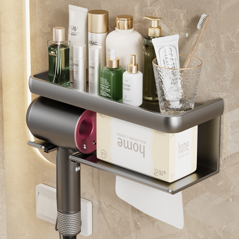 吸盤ヘアドライヤー収納ラックパンチフリースペースアルミバスルーム壁掛けヘアドライヤーブラケットバスルームハンギングラック