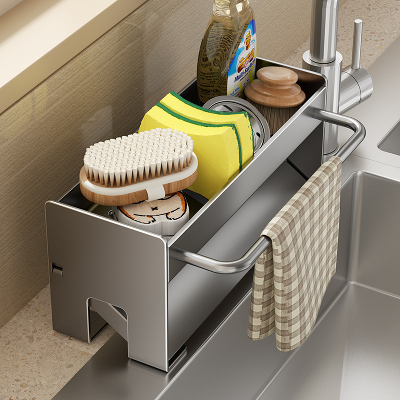 穴を開けないキッチンナイフホルダー家庭用炭素鋼箸筒刃物水切り付き雑巾一体収納棚