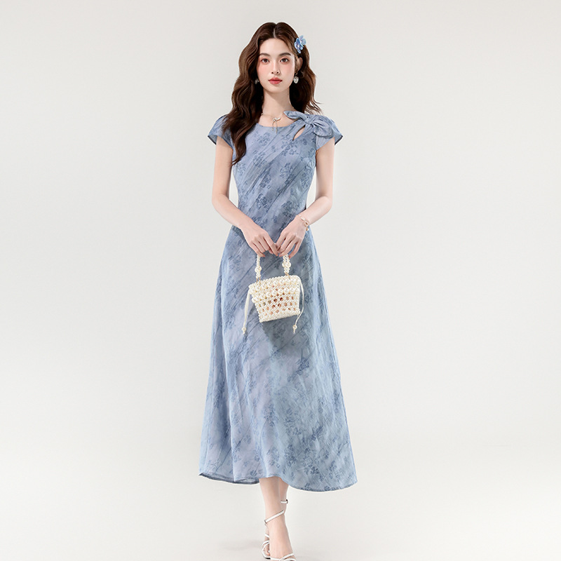 yjr9680 中国風の新しい中国風のインクプリントドレス 2025 夏の新しいファッション気質巾着スカート