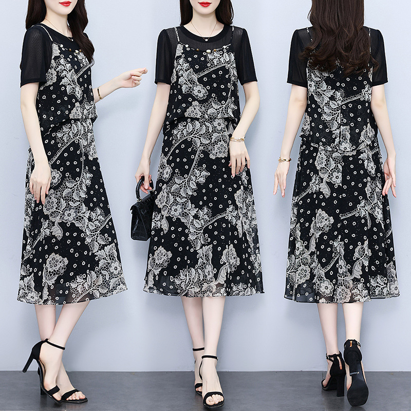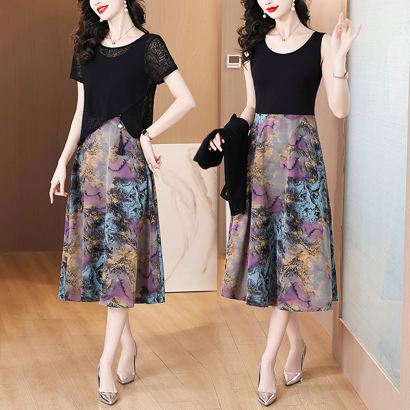xrxm3922 ファッション年齢軽減ウエストミッドレングスドレス女性のための 2025 夏気質多用途偽ツーピーススカート