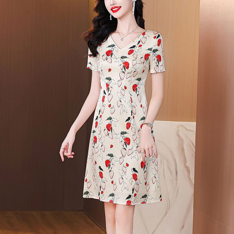 qwfs7730 フレンチスタイルプリント V ネックスリムドレス女性 2025 夏の新ファッションエレガントなスカート
