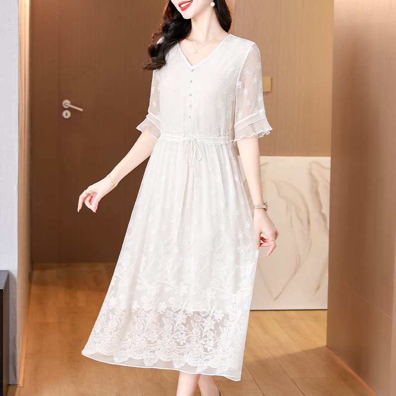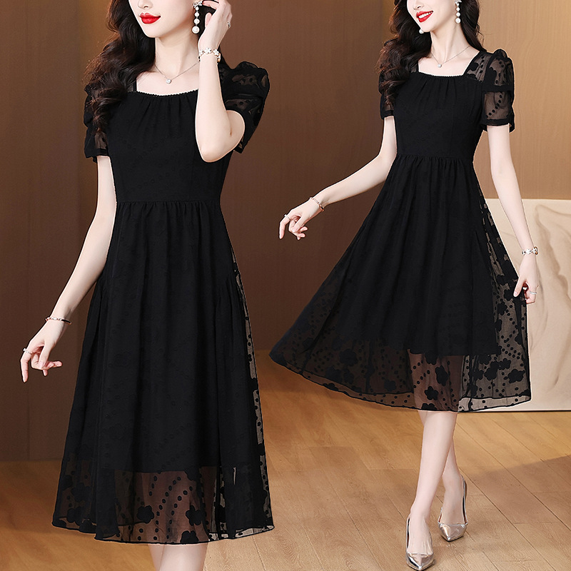 yjr9653 フレンチファッション気質レースドレス 2025 夏の新作ゆったり痩身ミドル丈スカート