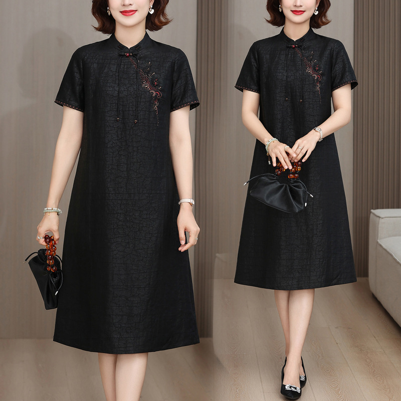 blx9663 レトロ中国風の黒のドレスの女性の 2025 夏の新しいエレガントな気質ウエスト痩身スカート