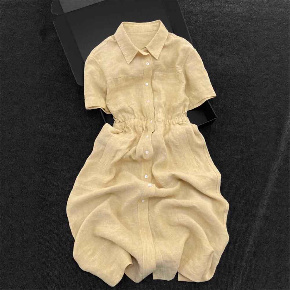 Bbfs 6855清純系のたるみ感は小柄な黄色のシャツのワンピース2025夏の新型の婦人服を着ます。